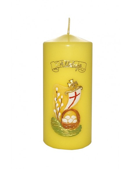 Masa – 0,480 kg Wysokość – 130 mm Bok podstawy – 70 mm Ilość szt. w opakowaniu – 21 szt. Świeca produkowana w kolorach białym i żółtym. Aplikacja woskowa, ręcznie malowana.