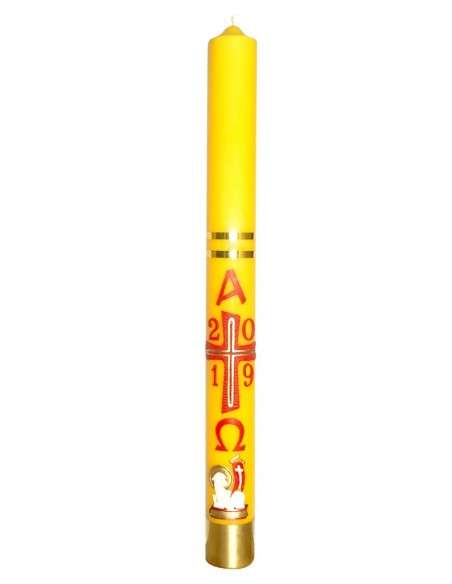 Świeca pakowana jednostkowo. Opakowanie zawiera komplet gron, a na krzyżu jest nawierconych 5 otworów do ich umieszczenia. Paschał udekorowany jest wypukłymi aplikacjami woskowymi. Dolna opaska jest tuleją mosiężną zwiększającą wytrzymałość mechaniczną jak i nadającą klasyczny wygląd tradycyjnej Świecy Paschalnej. Świeca produkowana jest w kolorze białym, żółtym i woskowym (z dodatkiem naturalnego wosku pszczelego)